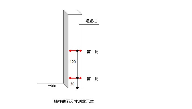 ●剪力墻/暗柱:選取長邊墻,任選長邊墻兩面中的一面作為1個(gè)實(shí)測區(qū)。累計(jì)實(shí)測實(shí)量20個(gè)實(shí)測區(qū)。