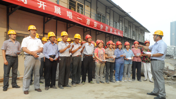 “山高高不過(guò)天,地大大不過(guò)天,天大的事情叫安全,它和千家萬(wàn)戶緊相連……”,6月21日一大早,在中遠(yuǎn)公司碧水云天·中央城A區(qū)施工現(xiàn)場(chǎng),整齊嘹亮的《安全為天》歌曲唱出了工人們的心聲。 據(jù)悉,6月份是全國(guó)安全生產(chǎn)月,建筑行業(yè)作為高危行業(yè),安全生產(chǎn)是建筑施工重中之重。 據(jù)該公司相關(guān)負(fù)責(zé)人介紹,為全面提高工人安全防范意識(shí),貫徹落實(shí)國(guó)家相關(guān)安全政策法規(guī),該公司在安全生產(chǎn)月伊始,相關(guān)安全負(fù)責(zé)人就制定了“安全生產(chǎn)月”活動(dòng)方案。包括制定《中遠(yuǎn)公司防汛搶險(xiǎn)應(yīng)急救援預(yù)案》;在工地上懸掛安全標(biāo)語(yǔ)條幅;工地自查自糾安全隱患;對(duì)工人利用早點(diǎn)名時(shí)間進(jìn)行安全生產(chǎn)知識(shí)培訓(xùn)。而學(xué)唱安全歌曲,作為一項(xiàng)既能促進(jìn)安全工作有效開展,又能愉悅工人身心的活動(dòng),受到了工人們的一致歡迎。