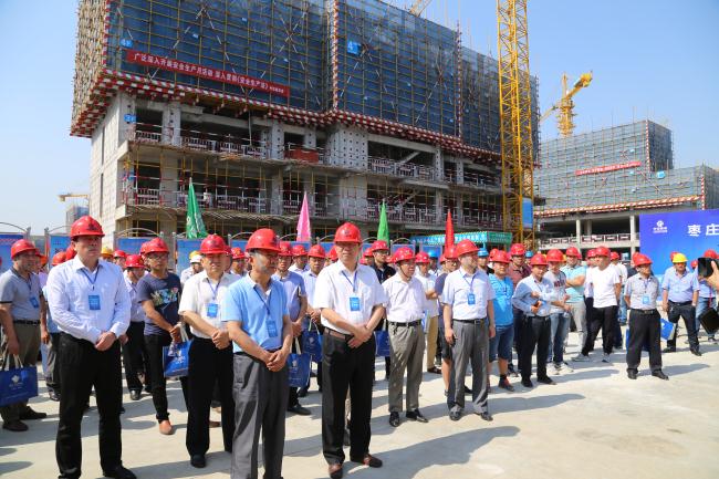 為進(jìn)一步規(guī)范全市建筑市場秩序,穩(wěn)步提高工程質(zhì)量、確保安全生產(chǎn),促進(jìn)建筑業(yè)持續(xù)健康發(fā)展6月1日上午,棗莊市建筑工程質(zhì)量安全現(xiàn)場會在中房·緹香郡二期項(xiàng)目現(xiàn)場召開。棗莊市住建局副局長康寶奇、滕州市副市長劉新出席會議,棗莊市建管局、市質(zhì)監(jiān)站、安監(jiān)站、各區(qū)市住建局、棗莊高新區(qū)建設(shè)局、滕州市建工局、質(zhì)量、安全監(jiān)督機(jī)構(gòu)及全市二級以上施工總承包企業(yè)主要負(fù)責(zé)人120余人參加了現(xiàn)場觀摩。  觀摩會現(xiàn)場,中房·緹香郡項(xiàng)目建設(shè)單位負(fù)責(zé)同志結(jié)合施工現(xiàn)場實(shí)際情況,從施工工藝、過程控制、模板支撐、安全文明施工等方面做了經(jīng)驗(yàn)介紹。與會人員參觀了施工現(xiàn)場的細(xì)部做法、揚(yáng)塵治理,被動房、裝配式推廣情況,以及樣板展示、園林體驗(yàn)區(qū),并與參觀同行進(jìn)行了深入交流。 在中房·緹香郡二期項(xiàng)目的建設(shè)中,中房開發(fā)公司秉持“好房子、好服務(wù)、好生活”的理念,以實(shí)施民生城建、打造品質(zhì)房產(chǎn)、建設(shè)健康住宅為目標(biāo),深入推進(jìn)BIM(建筑三維成像)技術(shù)的廣泛應(yīng)用,落實(shí)裝配式住宅和精裝修住宅建設(shè),啟動緹香郡二期被動式低能耗綠色建筑示范項(xiàng)目和綠色智慧住區(qū)示范項(xiàng)目建設(shè)。目前已通過了住建設(shè)部3A級性能認(rèn)定初審和二星級綠色建筑標(biāo)識。  該項(xiàng)目各建設(shè)單位分別以爭創(chuàng)省級安全文明工地、省優(yōu)質(zhì)結(jié)構(gòu)杯、泰山杯、魯班獎、國家廣廈獎等榮譽(yù)為目標(biāo),編制創(chuàng)優(yōu)計(jì)劃,層層分解,責(zé)任到人;施工中嚴(yán)把質(zhì)量安全關(guān),堅(jiān)持樣板引路,并不斷改進(jìn)施工工藝;加強(qiáng)全程監(jiān)控、全員管理,利用電子門禁系統(tǒng)推行工人實(shí)名制;嚴(yán)格落實(shí)質(zhì)量安全管理獎罰、專題例會、月評比、月公示等措施,確保工程質(zhì)量安全目標(biāo)的實(shí)現(xiàn)。  在隨后召開的全市建筑質(zhì)量安全現(xiàn)場會上,滕州市中遠(yuǎn)建設(shè)工程公司經(jīng)理張宗昌做代表發(fā)言。他分別從加大揚(yáng)塵治理,鞏固創(chuàng)衛(wèi)成果;聚焦智慧建設(shè),打造綠色施工;推進(jìn)兩個體系,強(qiáng)化安全管理;提升工藝技術(shù),不斷開拓創(chuàng)新;弘揚(yáng)匠人精神,積極創(chuàng)優(yōu)奪杯五個方面進(jìn)行了發(fā)言交流。與會人員對該公司現(xiàn)場施工工藝流程、安全文明施工標(biāo)準(zhǔn)化管理給予肯定,紛紛表示會將先進(jìn)做法用到自己工程項(xiàng)目中去。 (王月明) |
